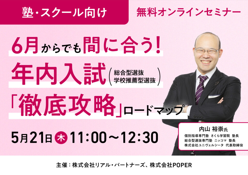 5月21日(木)開催、6月からでも間に合う! 年内入試(総合型・学校推薦型)「徹底攻略」ロードマップ(セミナー)