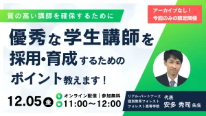 12月3日(水)「〜事業の柱を増やす!〜通信制高校サポート校 導入のリアルと成功・失敗ポイント」セミナーを開催します