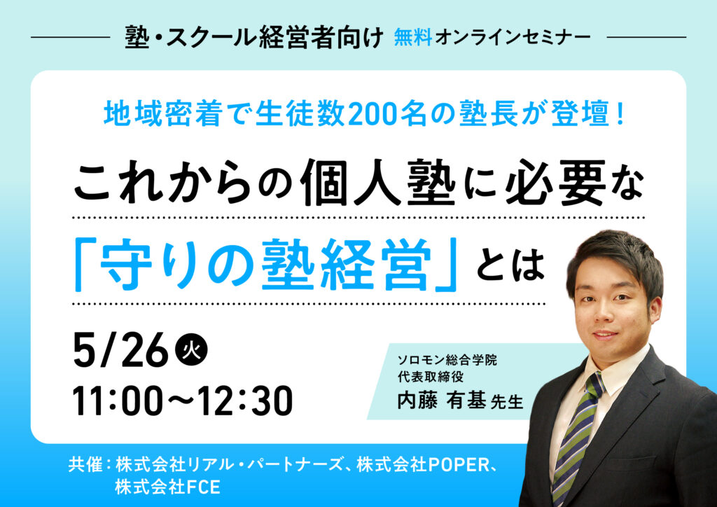 <地域密着で生徒数200名の塾長が登壇!これからの個人塾に必要な「守りの塾経営」とは>